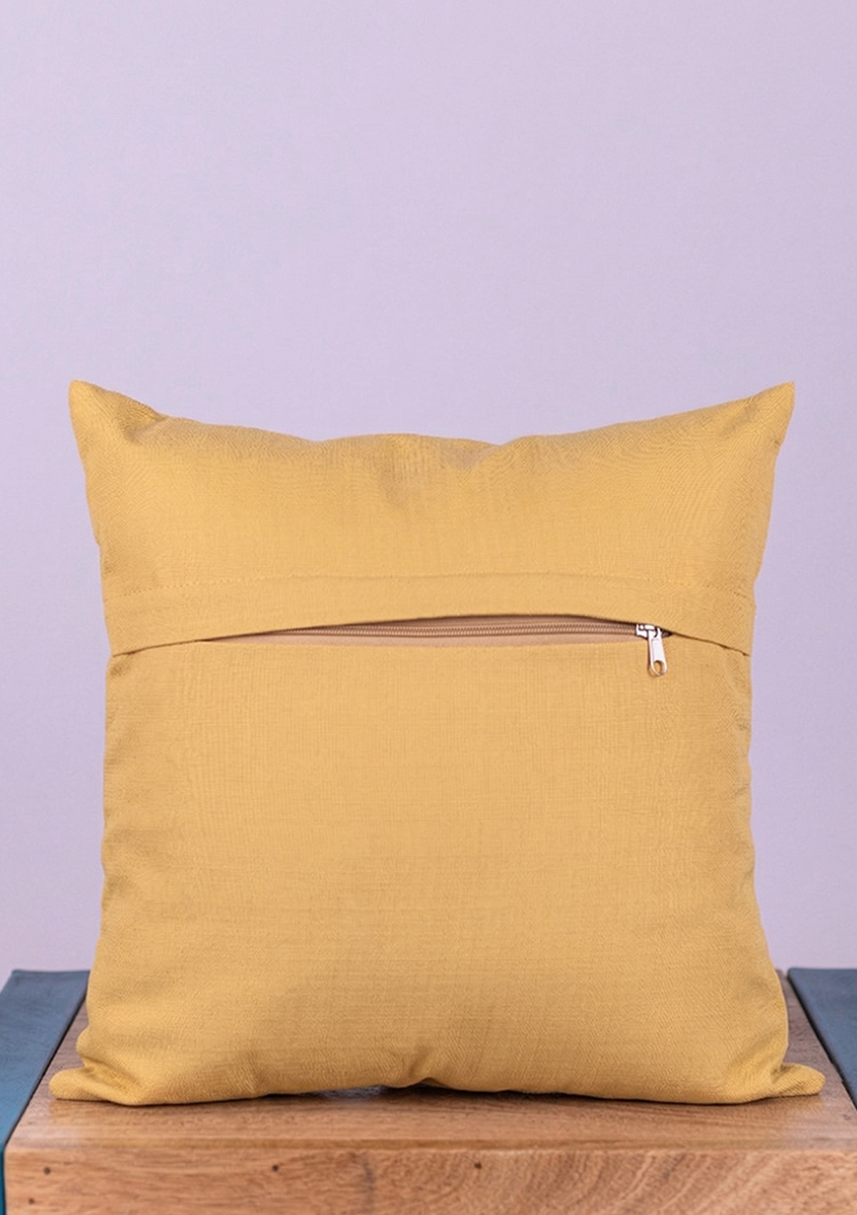 Add a warm accent to your space with this mustard solid cushion cover crafted from a polyester blend fabric. It offers a textured feel and a rich tone. Designed in a 16x16 inch size, it features high colorfastness for durability. The solid color enhances versatility, while the hidden flap zip ensures a clean finish. Easy to clean and ideal for modern interiors.
