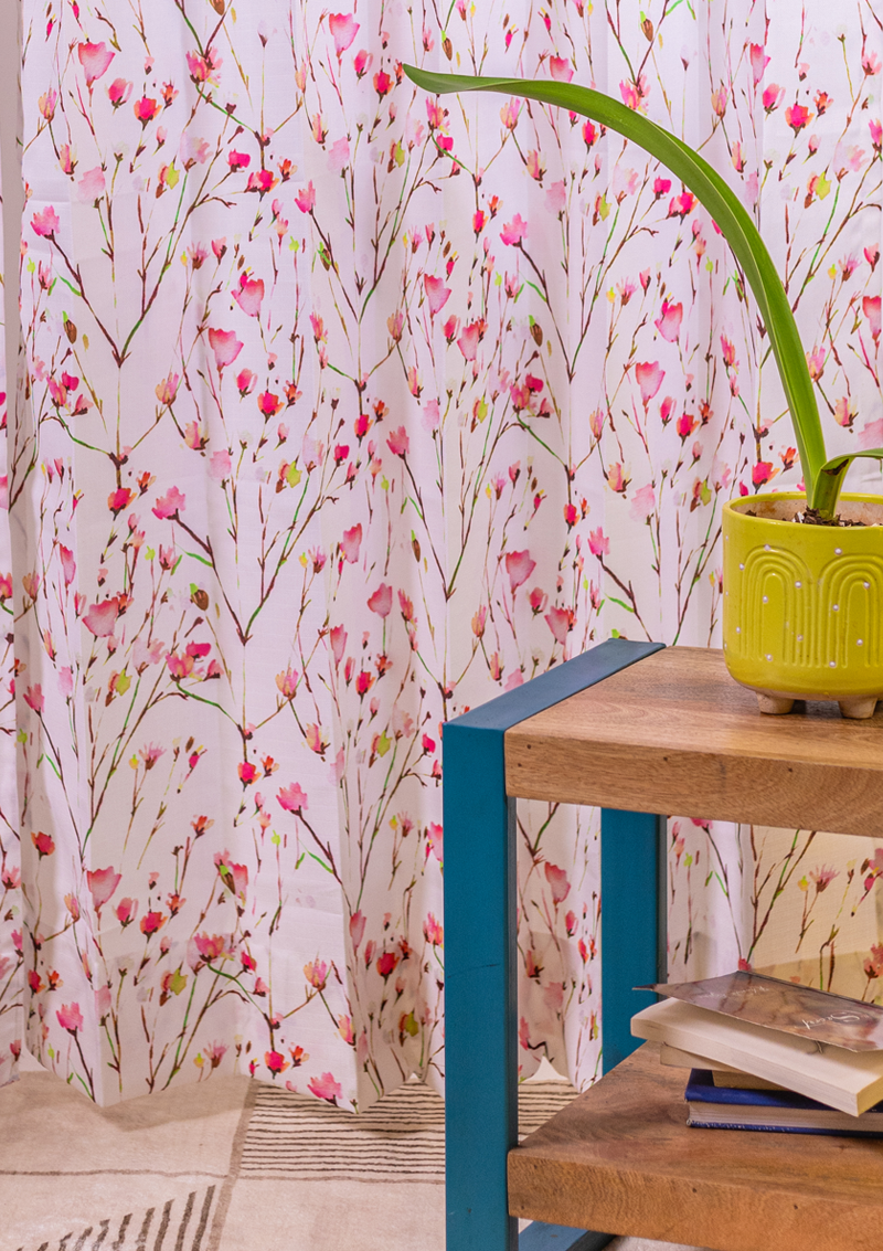 Water Color Design | Red colored Flower Curtain